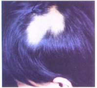斑禿又稱"鬼剃頭",是一種局限性脫發(fā)。斑禿患者的頭皮常會(huì)突然出現(xiàn)指甲蓋或錢幣大圓形脫發(fā)區(qū)、境界明顯、數(shù)目不等、大小不一、除脫發(fā)外無任何癥狀,脫發(fā)區(qū)邊緣頭發(fā)松動(dòng)易拔。如果斑禿癥狀不斷發(fā)展,頭發(fā)甚至?xí)棵撀洌Q為全禿。如果頭發(fā)、睫毛、眉毛、腋毛等均脫光,則稱為全脫或普脫。當(dāng)患者的病情發(fā)展到這種程度時(shí),治療難度也相應(yīng)的加大。