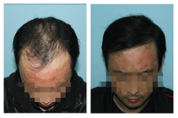 經過一個半月治療,小陳的脫發出現轉機,舊發不但基本不掉了,新發也生長得很快。現在他的頭發又黑又硬,原來光禿的前額部長出了濃密細小的毛發,頭頂部的天窗也被厚厚的頭發蓋得嚴嚴實實。由于祛除了表皮油脂,小陳原來臉部和背部的脂溢性皮炎也隨之消失。