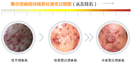 從中醫角度來講,痤瘡的發病分為肺熱、脾胃濕熱、陰虛、肝火旺盛等,因此在治療時一定要診斷清楚這些原因,做到針對性治療,以免因漏診造成漏治,導致痤瘡反復發作,在臉部形成丘疹、膿皰、囊腫、結節、疤痕,較終形成毀容性的聚合性痤瘡。