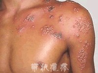 得了帶狀皰疹,1~3天后,發病部位的皮膚即出現綠豆粒大小、張力很大的丘疹、水皰,沿神經分布,集簇狀排列,呈條帶狀。患此病者,主要表現為全身疲倦無力、食欲不振、輕度發燒,很快發病部位感覺灼熱。輕者可以不痛,但有癢感,或只見紅斑而沒有明顯皰疹;重者疼痛明顯,坐臥不安,皮膚可以出現成群水皰、血皰嚴重甚至壞死。數日后由澄清透明的水皰變為混濁的膿皰,部分可破潰形成糜爛。老年患者常出現劇烈疼痛。如果治療不及時,在皮損消退后,進入帶狀皰疹后遺癥期,留下反復的神經疼痛。