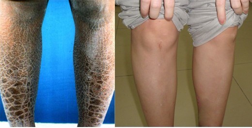 今年26歲的鐘凱自3歲就開始患魚鱗病,治了十幾年,外用涂抹藥物,喝過差不多一年網(wǎng)頁介紹的什么花茶,都沒特別明顯效果,一直堅(jiān)持使用各種滋潤保濕的護(hù)膚品,雖然“魚鱗”沒有變得更嚴(yán)重,但總也好不了,今年5.1向喜歡的女孩子告白時(shí),也向女孩坦誠了自己的皮膚病,女孩說父母怕遺傳給下一代而不同意。痛苦的鐘凱又開始到處尋找治療魚鱗病的“神藥奇方”,只要聽說哪里能治就去嘗試,結(jié)果魚鱗病卻更嚴(yán)重了。7月初來膚康中醫(yī)院皮膚科時(shí),車傳華主任醫(yī)師為他檢查了病情,告訴他,魚鱗病的發(fā)病原因和類型的不同,其治療方法是不一樣的,一定要選擇正確的方法科學(xué)治療,不能盲目治療。另外治療魚鱗病一定要有耐心,堅(jiān)持治療,保持良好的心態(tài)也很重要。