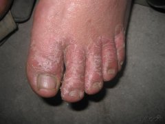 2、足癬多見于成人,男女皆可罹患。往往夏季加重,秋季減輕,若未徹底治療,常遷延多年。依其皮損表現(xiàn)常可見分為以下3型,但三者可同時或交替出現(xiàn),或以,某一型為主。