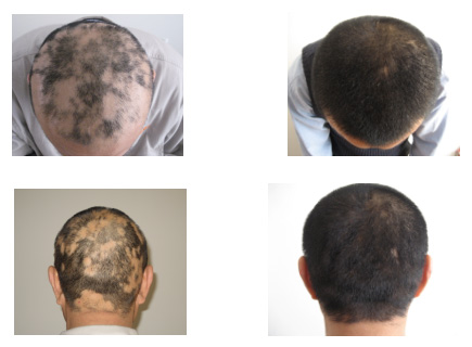 長春膚康醫院皮膚科脫發治療中心自主創立的“中西醫結合毛發自我再生療法”,以促進斑禿患者毛發再生為原則,針對不同程度和類型的斑禿病癥,內服特制中藥、外用中藥成分生發洗劑,輔以中藥熏蒸和納米波照射,活血化瘀、疏通絡脈、改善毛囊營養、刺激毛囊生長、促進新發再生,對斑禿進行內調外治,取得了良好療效。“自我再生法”給斑禿患者帶來了頭發新生的希望。