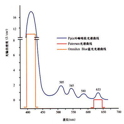光動力療儀可以輸出純度接近99%的窄譜藍光,非常接近青春痘內(nèi)源性卟啉的吸收光譜。高純度藍光幾乎全部能量有效作用于靶目標-青春痘丙酸桿菌(P.)上。應用光動力治療原理,青春痘丙酸桿菌(P.)內(nèi)源生成的光敏劑卟啉被415nm 的藍光激活(卟啉的主要成分為糞卟啉Ⅲ)產(chǎn)生光毒環(huán)境,轉(zhuǎn)換成的毒性單態(tài)氧迅速殺死青春痘丙酸桿菌,進而將皮膚上的青春痘清除。